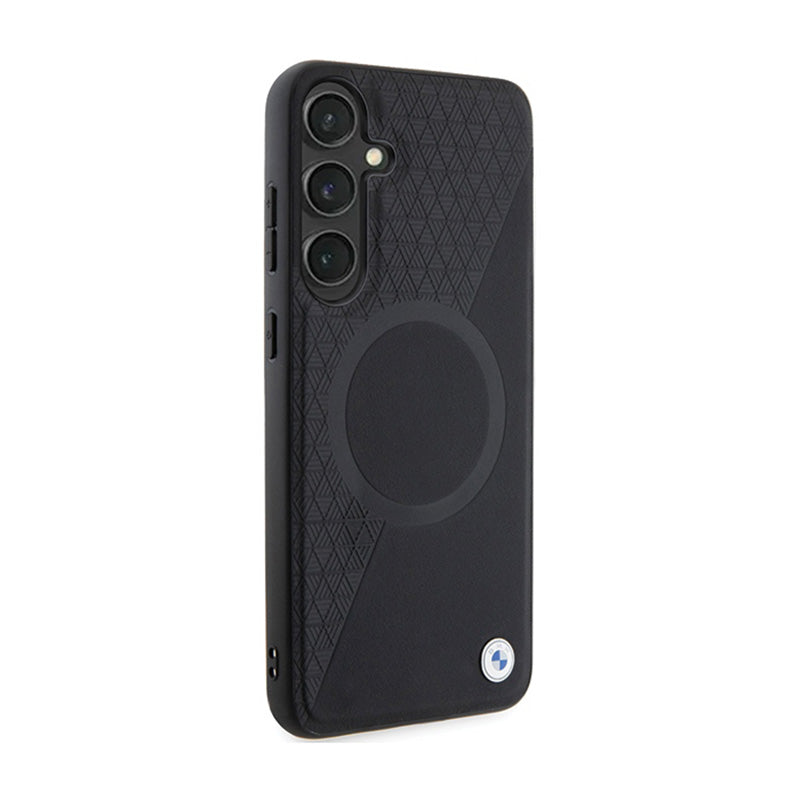 BMW Odinis Dėklas su Pusiau Tekstūra ir Apskritimu, MagSafe – skirtas Samsung Galaxy S24+ (juodas)