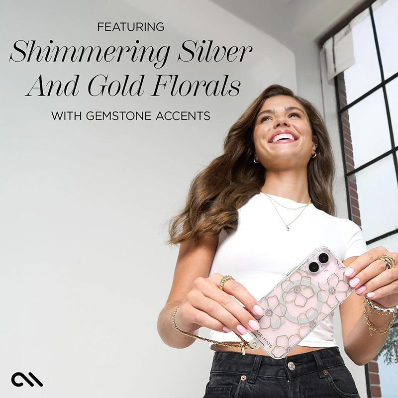 Case-Mate Floral Gems MagSafe – dėklas iPhone 16 Plus (auksinis)