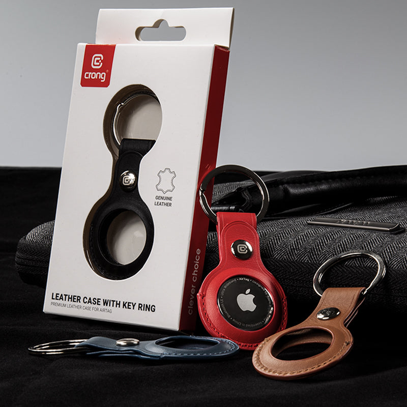 Crong odinis dėklas su raktų pakabuku – odinis apsauginis dėklas raktų pakabukas, skirtas „Apple AirTag“ (žalias)