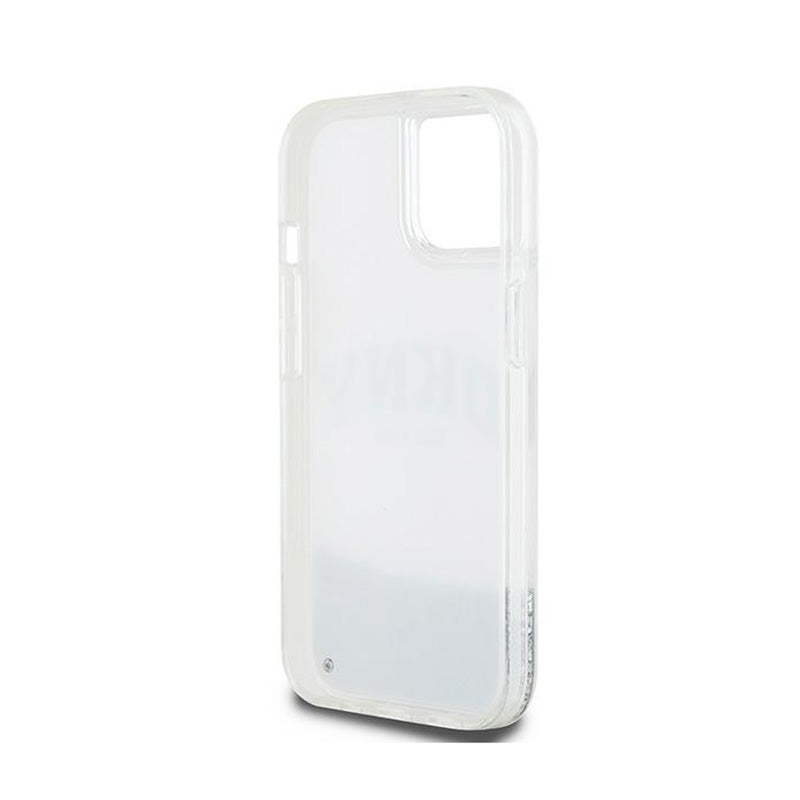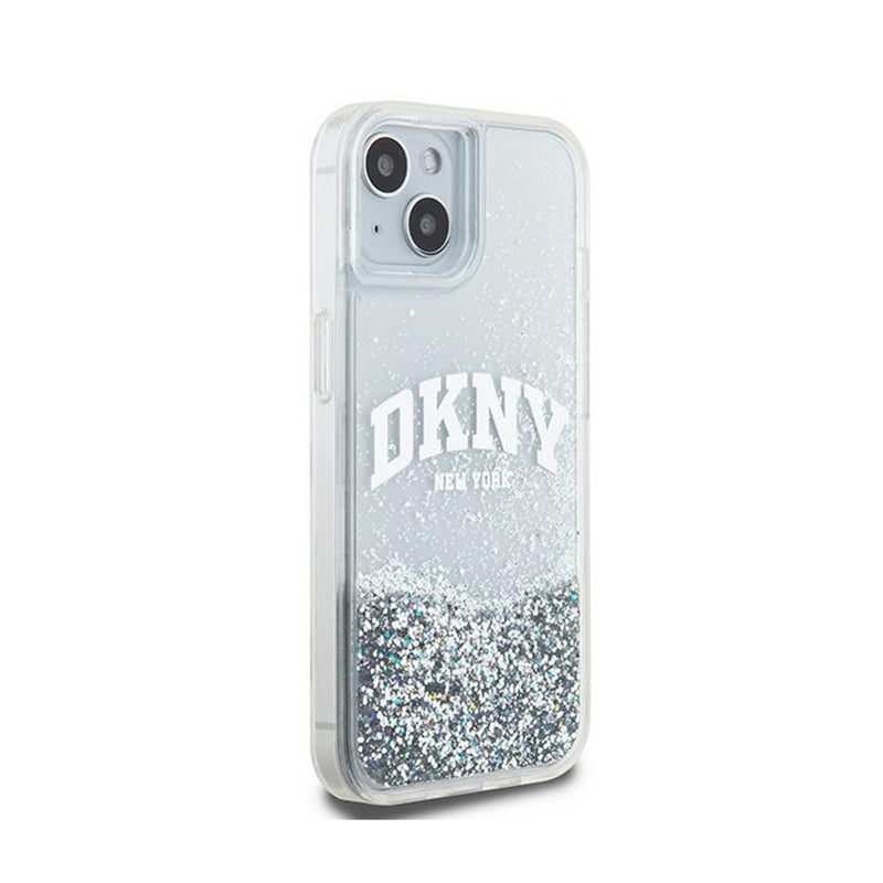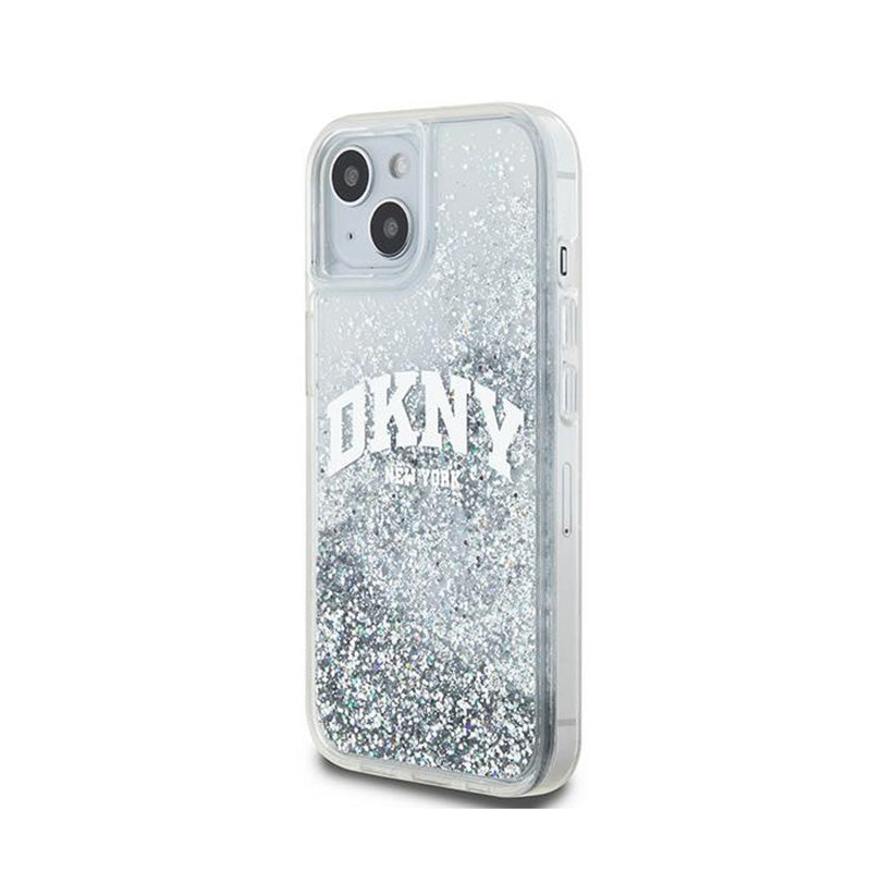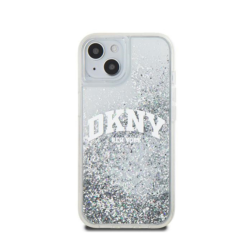 DKNY Skystas blizgučių dėklas su Dideliu logotipu, skirtas iPhone 15 / 14 / 13 (baltas)