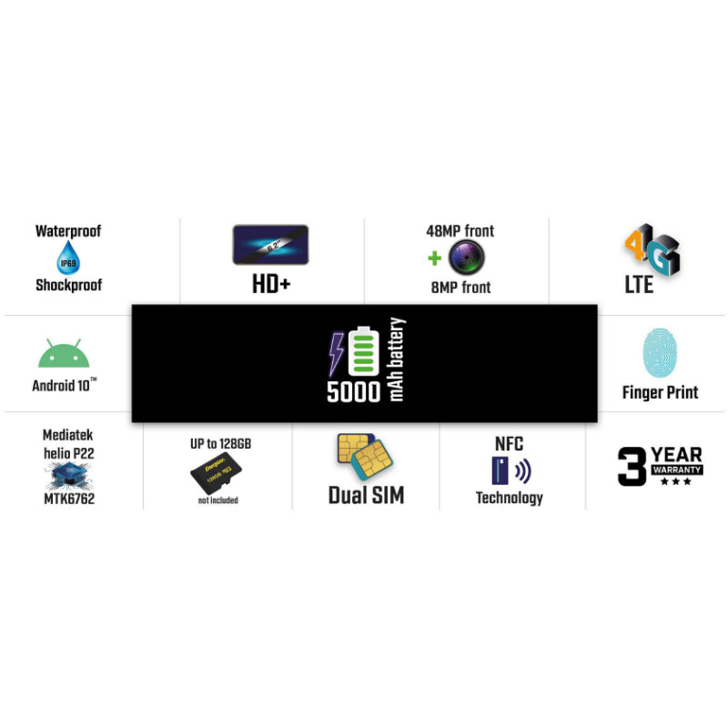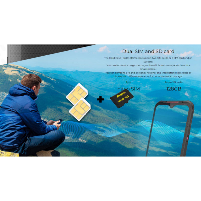 EkranasPatirkite visišką panardinimą į turinį. Energizer HardCase H620S išmanusis telefonas sužavės jus iš pirmo žvilgsnio savo HD+ raiška, kad pasinertumėte į vaizdinę patirtį, kupiną spalvų ir detalių.Procesorius ir atmintisH620S pasižymi universalumu ir geriausiai prisitaiko, kad suteiktų geriausią patirtį, išlaikant prietaiso autonomiją. Jame yra 8 branduolių MediaTek MTK6762V/WB procesorius, kuris yra pakankamai galingas, kad atitiktų visus apdorojimo reikalavimus. Kartu su 4GB RAM ir 64GB vidine atmintimi jis užtikrina neįtikėtinai sklandų veikimą sunkiuose žaidimuose, vaizdo įrašuose ar daugiafunkcėse programose.Talpi baterijaMėgaukitės viskuo, ką jūsų išmanusis telefonas gali pasiūlyti, nesijaudindami dėl baterijos lygio. HardCase H620S turi 5000 mAh bateriją, todėl vienu įkrovimu jis veikia labai ilgai, todėl yra puikus kompanionas.Atsparus vandeniuiH620S atitinka griežtą IP69 sertifikatą, kuris suteikia beveik geriausią apsaugą nuo vandens. Įrenginys su šiuo sertifikatu yra hermetiškai uždarytas ir gali atlaikyti panardinimą į 1,2 metro gylį 30 minučių.PatvarumasDėl savo itin atsparios dangos H620S gali atlaikyti daugybę smūgių ir yra atsparus kritimams iš iki 1,2 metro aukščio. Tai idealus prietaisas, skirtas darbui labai dulkėtose ar smėlio aplinkose ir panašiomis pramoninėmis sąlygomis, nepakenkiant veikimui.KameraSu 48 MP pagrindine kamera H620S išmanusis telefonas gali užfiksuoti peizažą, kurį matote ir mėgstate. Atraskite paslaptingą pasaulį ir savo šedevrą. 8 MP priekinė kamera tiksliai seka jūsų bruožus ir paryškina apšvietimą, odos toną ir veido tekstūros detales, kad kiekviena asmenukė atrodytų graži ir natūrali.Dvi SIM kortelėsH620S išmanusis telefonas gali palaikyti dvi SIM korteles ir vieną Micro-SD kortelę. Padidinkite telefono atmintį ir naudokite 2 skirtingas SIM korteles viename telefone. Galite sujungti 2 planus arba pasirinkti du skirtingus operatorius, kad tinklas būtų geriau apimtas.Pirštų atspaudų skaitytuvasTelefone yra įmontuotas pirštų atspaudų skaitytuvas. Tiesiog lengvai paspausdami pirštą, galite akimirksniu atrakinti telefoną.Produkto savybės:- Didelis 6,2 colio TFT HD+ ekranas- 48 MP pagrindinė kamera ir 8 MP priekinė kamera- Procesorius: 8 branduolių- Dažnis: 1,8 GHz- ROM: 64 GB- RAM: 4 GB- Dvi SIM kortelės palaikymas- Bluetooth 5.0 palaikymas- 5000 mAh baterija- 4G LTE palaikymas- Išplečiama atmintis per Micro-SD kortelę iki 128 GB- Android 10 operacinė sistema- Pridedama: 1x Energizer HardCase H620S išmanusis telefonas, 1x įkroviklis, 1x ausinės, 1x kabelis, 1x vartotojo vadovas
