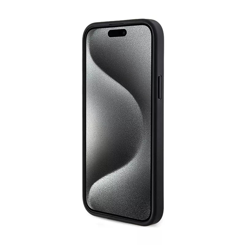 Guess 4G Collection Leather Metal Logo MagSafe – dėklas „iPhone 15/14/13“ (juodas)