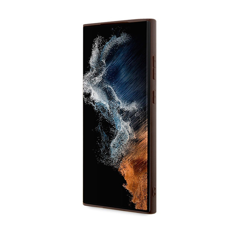 Guess 4G Collection Oda Metalo Logotipas MagSafe - Dėklas Samsung Galaxy S24 Ultra (Rudos spalvos)