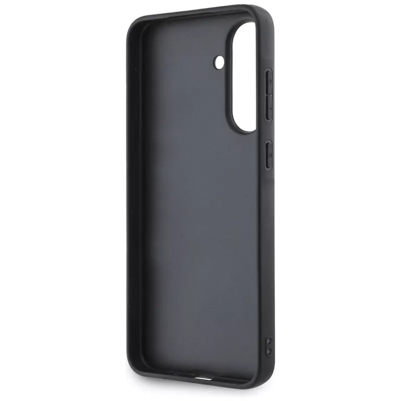 Guess 4G dėklas su metaliniu auksiniu logotipu, skirtas Samsung Galaxy A36 5G (juodas)