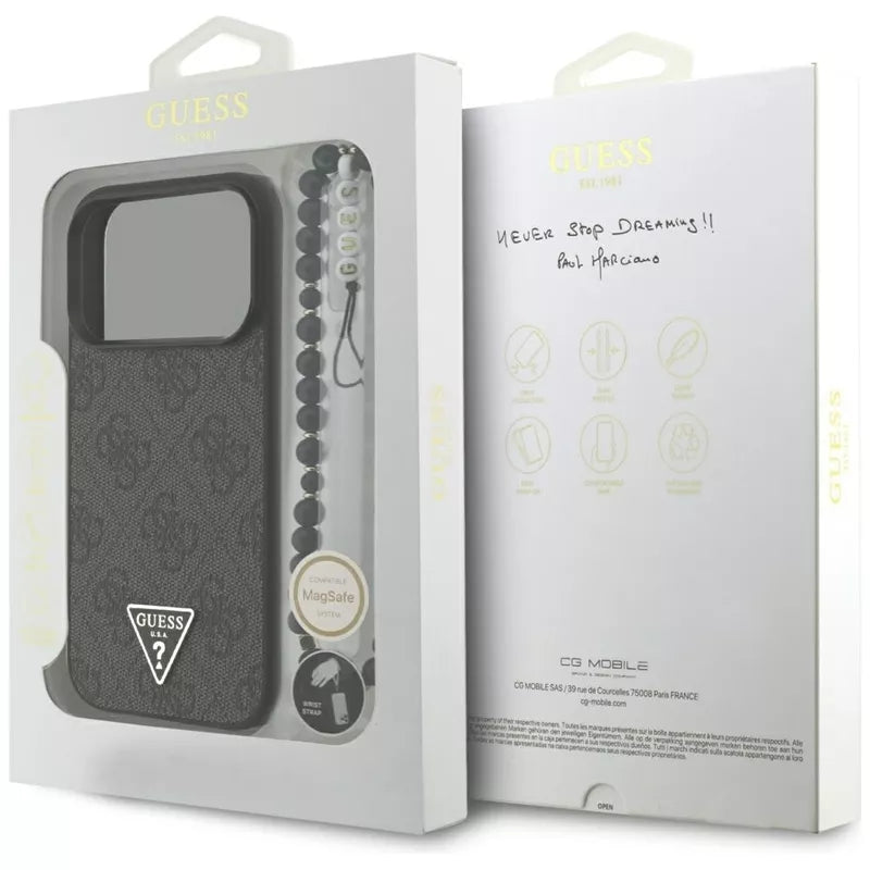 Guess 4G Dirželis Trikampis Logotipas MagSafe - Dėklas iPhone 17 Pro (juodas)