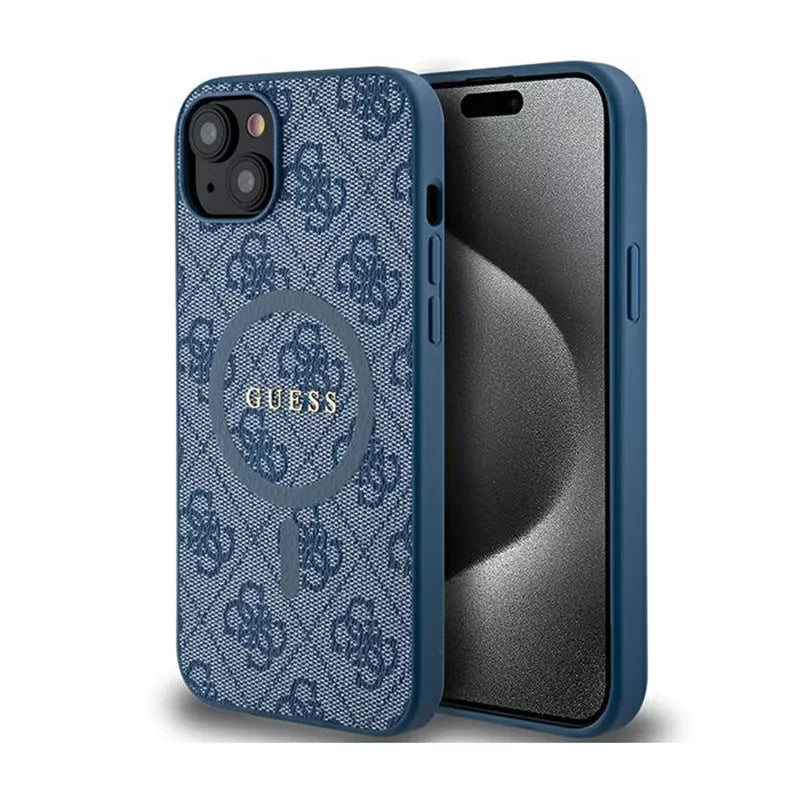 Guess 4G Kolekcija Odos Metalinis Logotipas MagSafe dėklas iPhone 15/14/13 (Mėlyna)