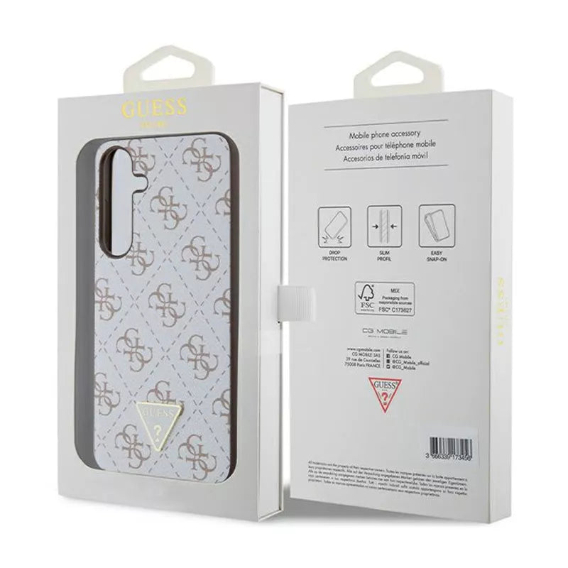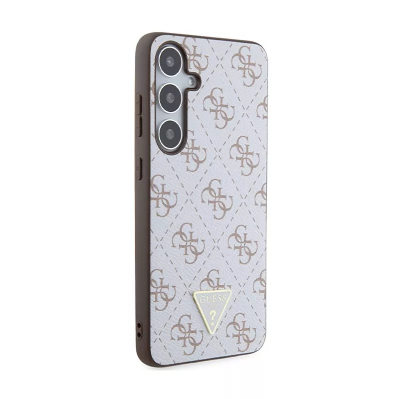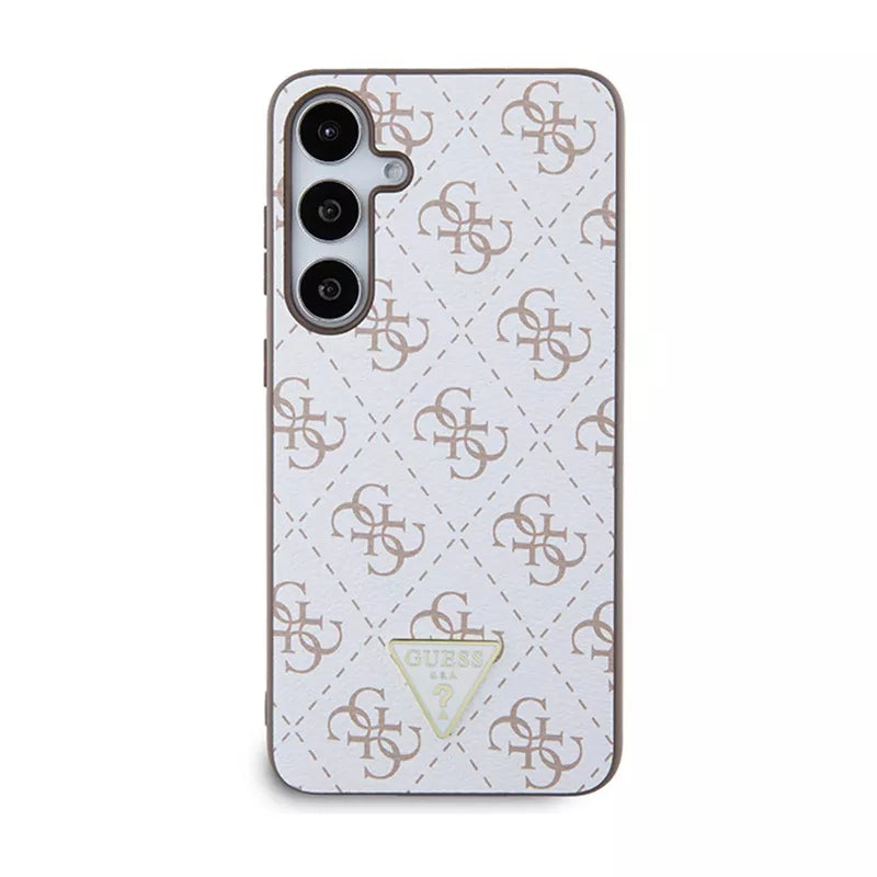 Guess 4G Trikampis metalinis logotipas - Dėklas Samsung Galaxy S24+ (Balta)