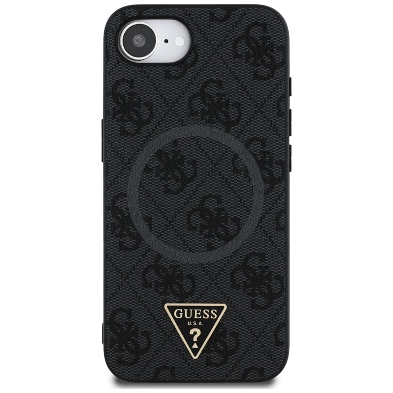 Guess 4G žiedo trikampio logotipo „MagSafe“ – dėklas, skirtas „iPhone 16e“ (juodas)