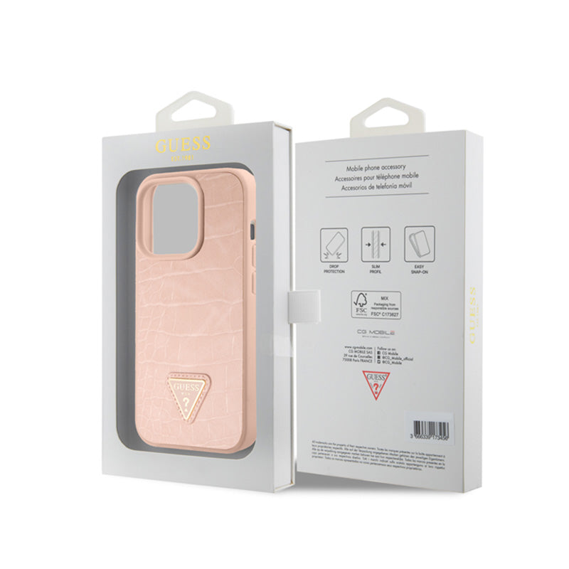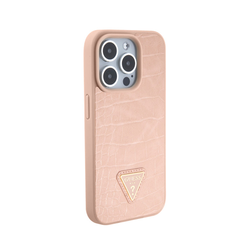 Guess Croco Triangle Metal Logo - "iPhone 15 Pro" dėklas (rožinis)