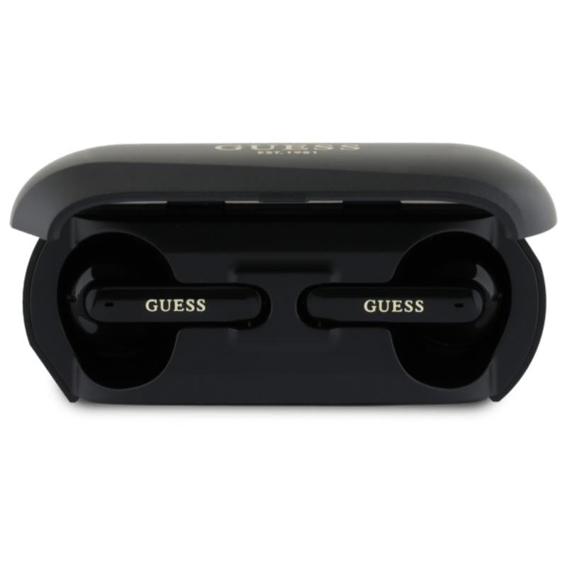 Guess Elongated Metallic Printed Logo - Bluetooth TWS ausinės + įkrovimo dėklas (juodos spalvos)