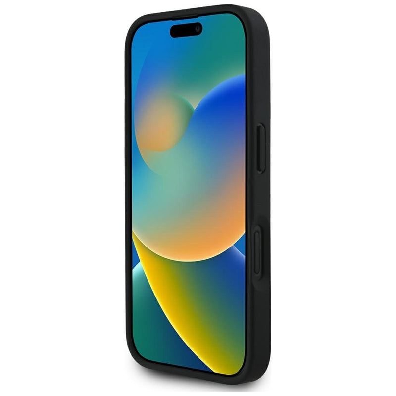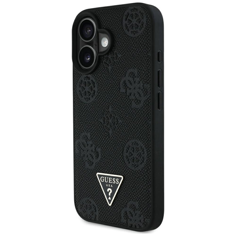 Guess Grūdėtas karštas antspaudas bijūnų trikampio logotipas MagSafe – dėklas iPhone 16 (juodas)