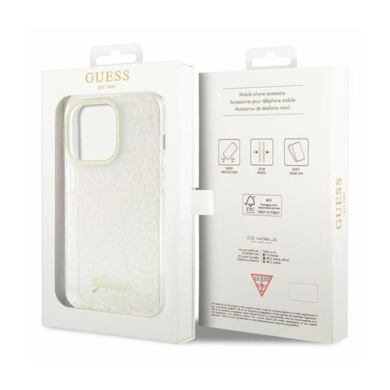Guess IML Briaunotas Veidrodinis Diskas Vaivorykštinis – „iPhone 15 Pro Max“ dėklas (rožinis)