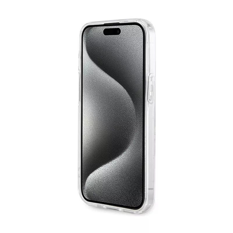 Guess IML Flowers Wreath MagSafe – dėklas, skirtas iPhone 15 (skaidrus)