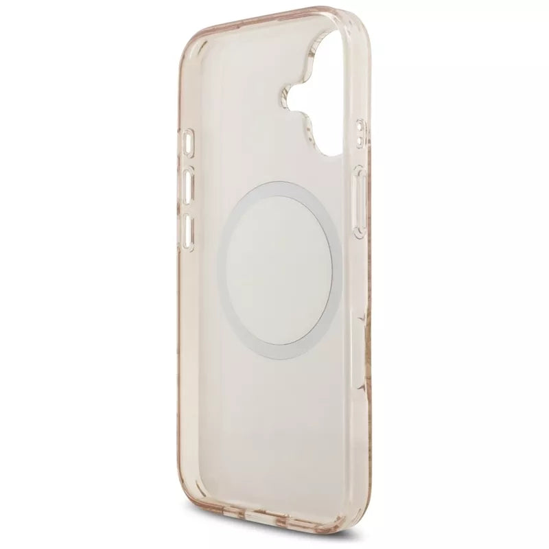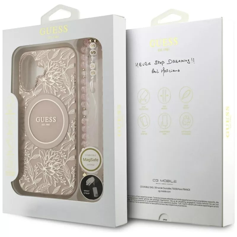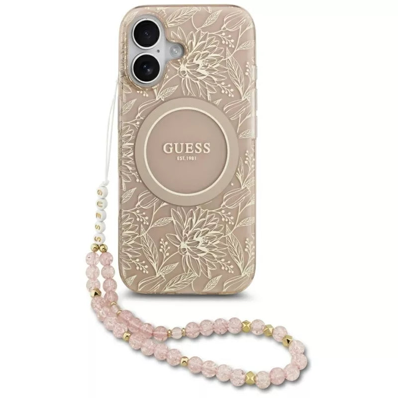 Guess IML Gėlės Elektrinis Perlinis Dirželis MagSafe dėklas iPhone 17 (rožinis)