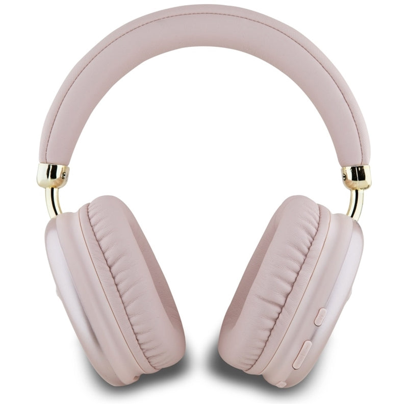 Guess Metallic Triangle Logo – Belaidės ant ausų dedamos ausinės „Bluetooth V5.3“ (rožinės spalvos)