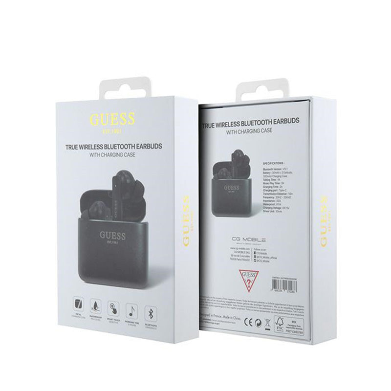 Guess Printed Logo – TWS „Bluetooth“ ausinės + įkrovimo dėklas (juodas)