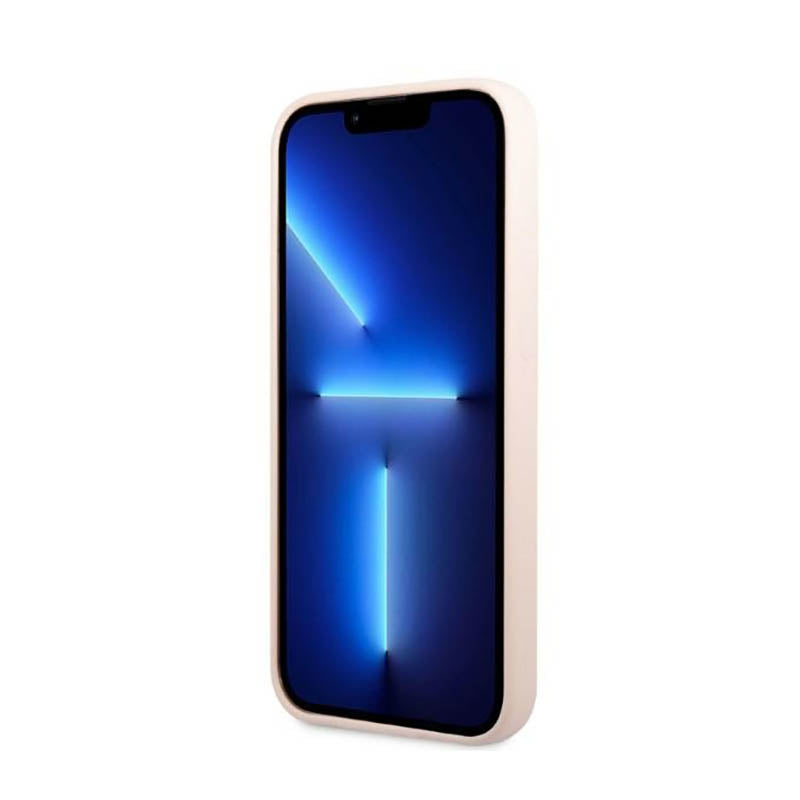Guess Silicone Logo Plate MagSafe – dėklas iPhone 13 Pro Max (rožinis)