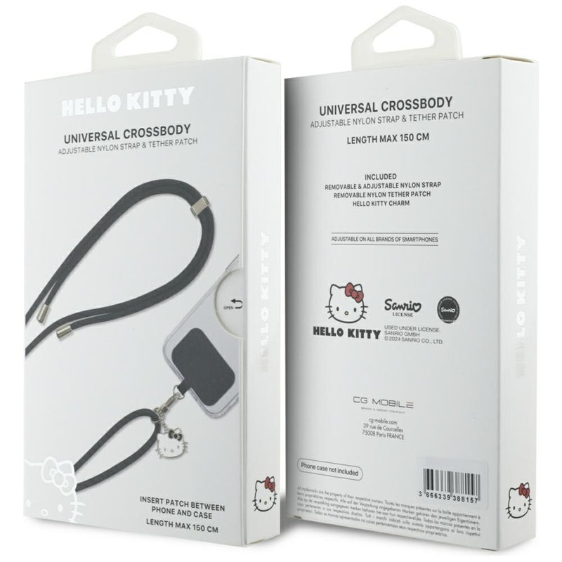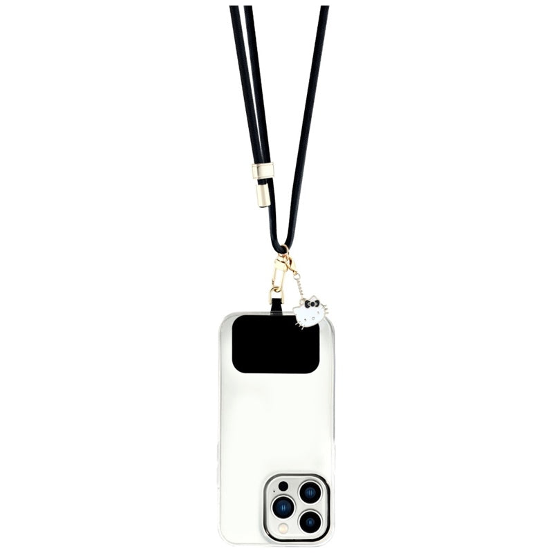 Hello Kitty pleistras ir Kitty galvos pakabukas – universalus telefono dirželis / raištelis (juodas)