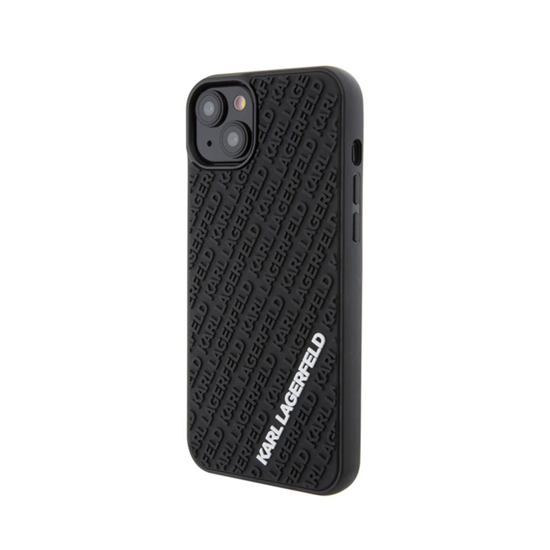 Karl Lagerfeld 3D guminis kelių logotipų – dėklas, skirtas „iPhone 15 Plus“ (juodas)