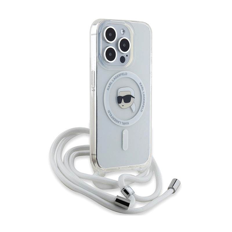 Karl Lagerfeld krepšys per petį IML Karl Head MagSafe – „iPhone 15 Pro Max“ dėklas (permatomas)