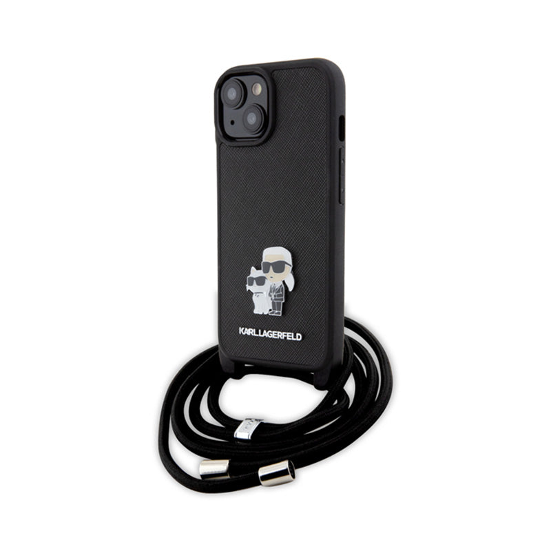 Karl Lagerfeld krepšys per petį Saffiano Metal Pin Karl & Choupette – dėklas, skirtas „iPhone 15“ (juodas)