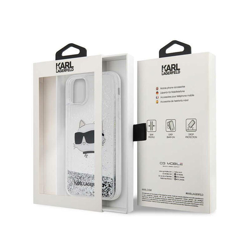 Karl Lagerfeld Liquid Glitter NFT Choupette Head – dėklas iPhone 11 (sidabras)