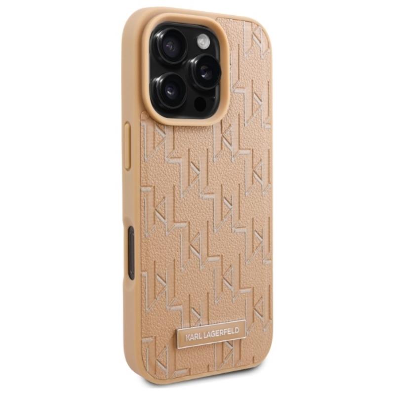Karl Lagerfeld odos Monogram Metal Logo MagSafe - dėklas, skirtas „iPhone 16 Pro“ (smėlio spalvos)