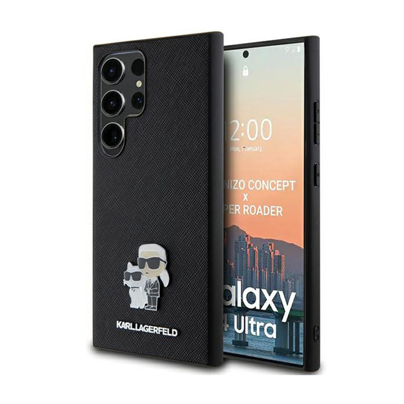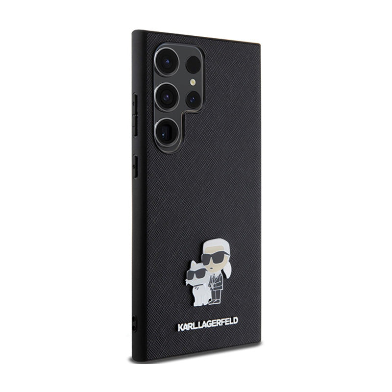 Karl Lagerfeld Saffiano Karl & Choupette metalinis smeigtukas - dėklas, skirtas Samsung Galaxy S24 Ultra (juodas)