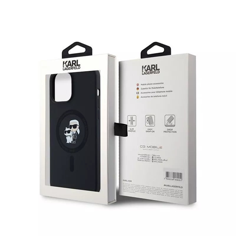 Karl Lagerfeld Silicone Karl & Choupette MagSafe – „iPhone 13 Pro Max“ dėklas (juodas)