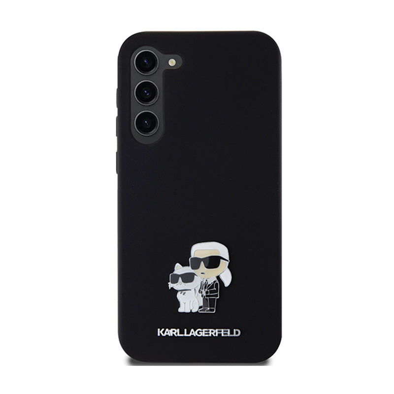 Karl Lagerfeld Silicone Karl & Choupette Metal Pin - dėklas „Samsung Galaxy S24+“ (juodas)