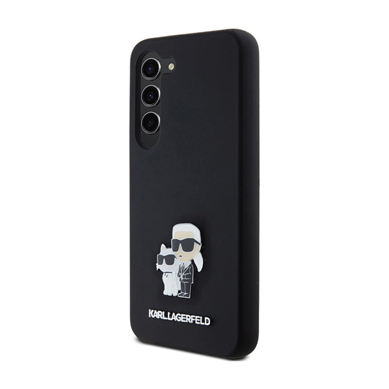 Karl Lagerfeld silikonas Karl & Choupette Metal Pin - dėklas, skirtas Samsung Galaxy S24 (juodas)