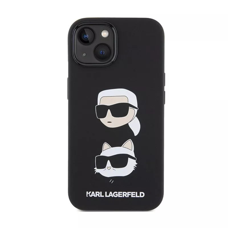Karl Lagerfeld silikoninis dėklas „Karl & Choupette Heads“ – „iPhone 15 Plus“ (juodas)