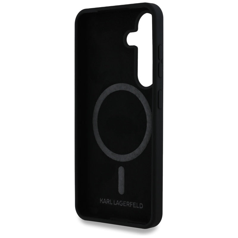 Karl Lagerfeld Silikoninis dvigubos galvutės ir apskritimo „MagSafe“ – dėklas, skirtas „Samsung Galaxy S25“ (juodas)