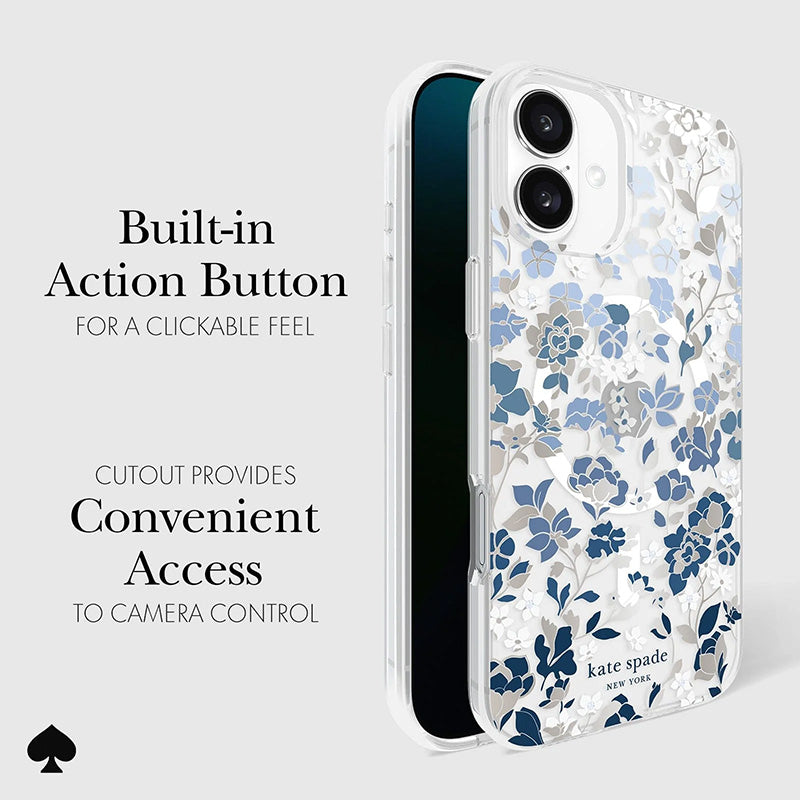 Kate Spade New York Protective Gems MagSafe – dėklas, skirtas iPhone 16 Plus (žiedų gėlynas mėlynas)