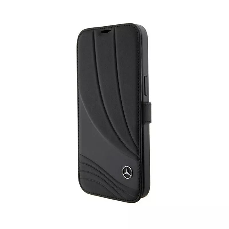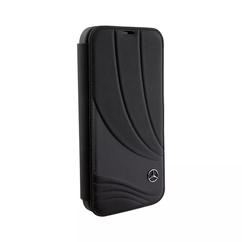 Mercedes atverčiamas odinis dėklas su bangų raštu – iPhone 15 Pro dėklas (juodas)