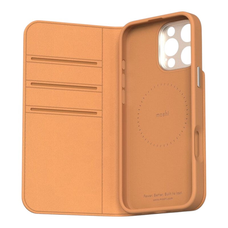 Moshi Overture MagSafe – 3-in-1 odos atverčiamas dėklas, skirtas „iPhone 16 Pro“ (karamelinis rudas)