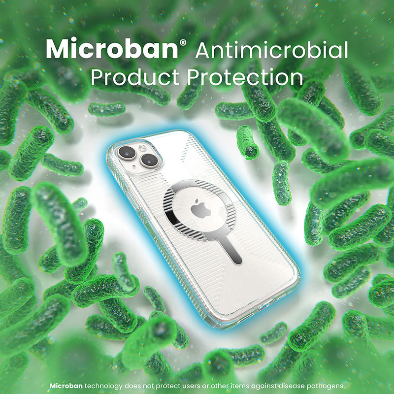 Speck Gemshell Grip + MagSafe – dėklas, skirtas iPhone 15 Plus / iPhone 14 Plus (skaidrus / chromo apdaila)