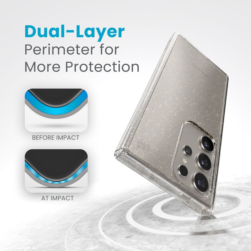 Speck Presidio Lux Glitter - „Samsung Galaxy S24 Ultra“ dėklas (skaidrus / aukso blizgučiai)