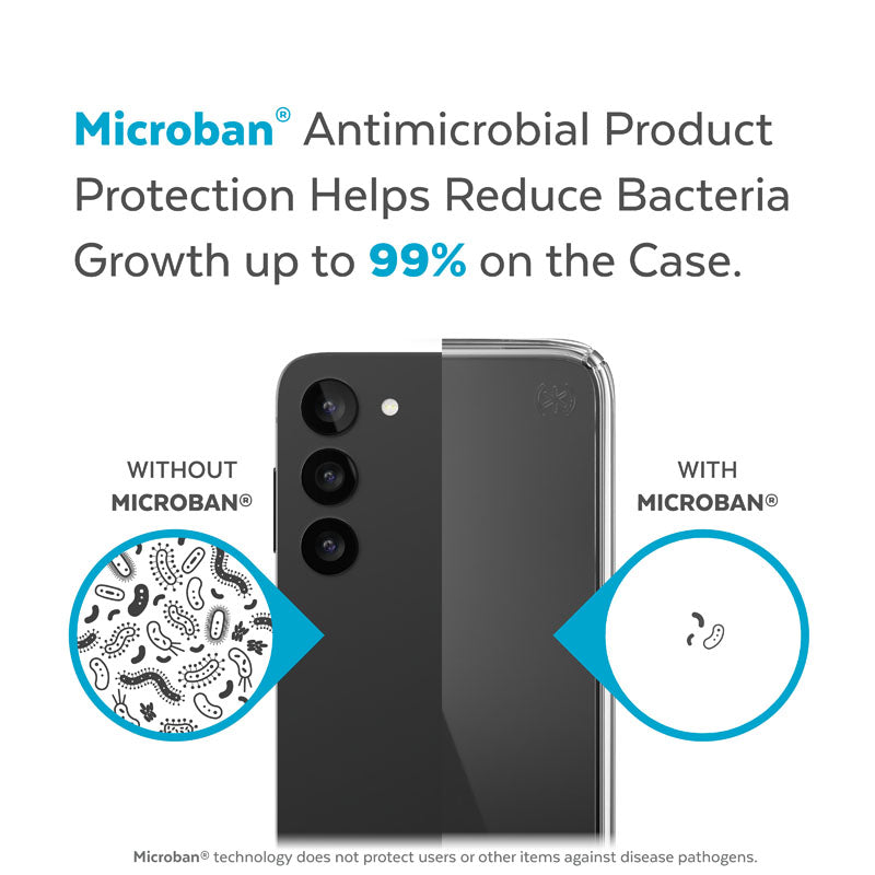 Speck Presidio Perfect-Clear – dėklas „Samsung Galaxy S23+“ su „MICROBAN“ danga (skaidrus)