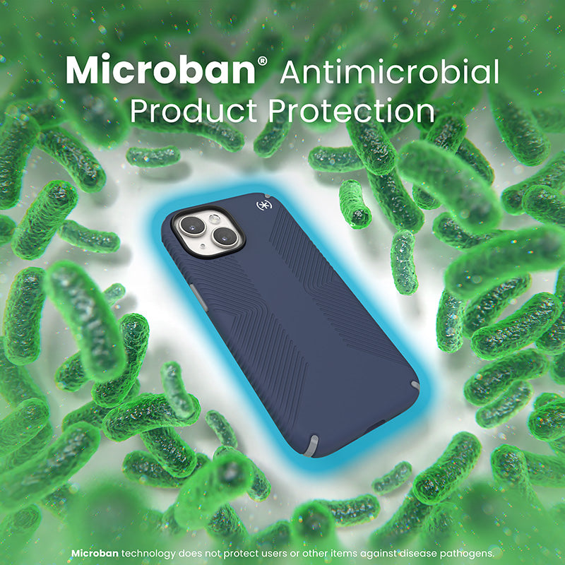 Originalus „Speck Presidio2 Grip“ serijos apsauginis korpusas taip pat siūlo MICROBAN® antibakterinę apsaugą (pasaulinė antibakterinių sprendimų lyderė, turinti platų portfelį iš daugiau nei 25 patvirtintų technologijų). Į dėklo struktūrą įmontuota veiklioji medžiaga sustabdo 99% bakterijų, kurios kaupiasi ant dėklo paviršiaus. MICROBAN® technologija užtikrina visą gyvenimą trunkančią apsaugą nuo dėmes ir nemalonų kvapą sukeliančių bakterijų ir veikia ląstelių lygmeniu, kad korpusas būtų švarus.