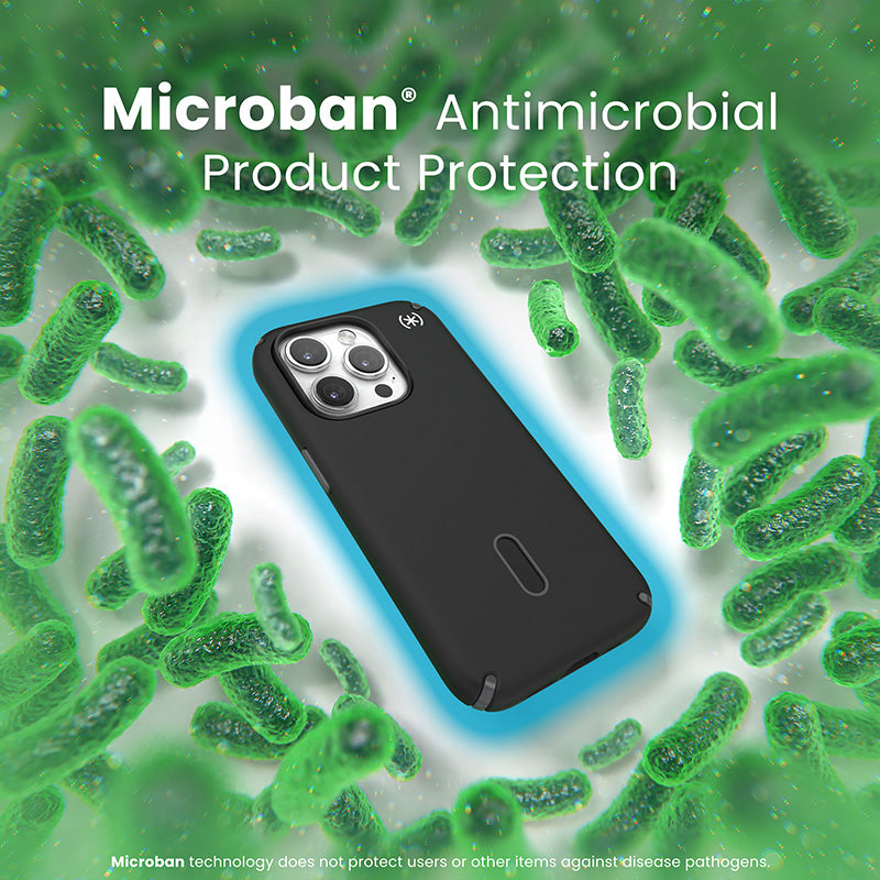 Originalus Presidio®2 Pro apsauginis dėklas taip pat siūlo MICROBAN® antimikrobinę apsaugą (pasaulinis lyderis antimikrobinių sprendimų srityje, turintis platų portfelį iš daugiau nei 25 patvirtintų technologijų). Aktyvi sudedamoji dalis, įmontuota į dėklo struktūrą, sustabdo 99 % bakterijų, kurios kaupiasi ant dėklo paviršiaus. MICROBAN® technologija taip užtikrina visą gyvenimą trunkančią apsaugą nuo dėmes ir kvapus sukeliančių bakterijų ir veikia ląstelių lygmeniu, kad dėklas išliktų švarus.