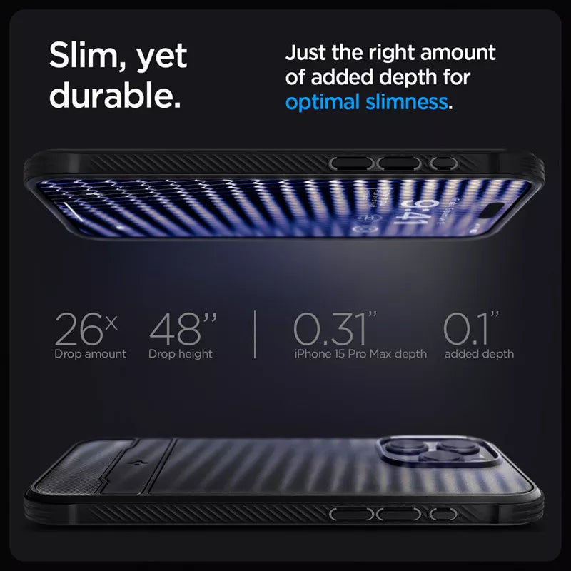 Spigen Rugged Armor Mag MagSafe – dėklas, skirtas iPhone 15 Pro Max (matinė juoda)