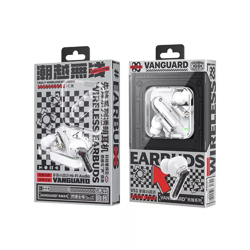 WEKOME V51 Vanguard Series - belos, belaidžiai TWS ausinės su įkrovimo dėklu, Bluetooth V5.1