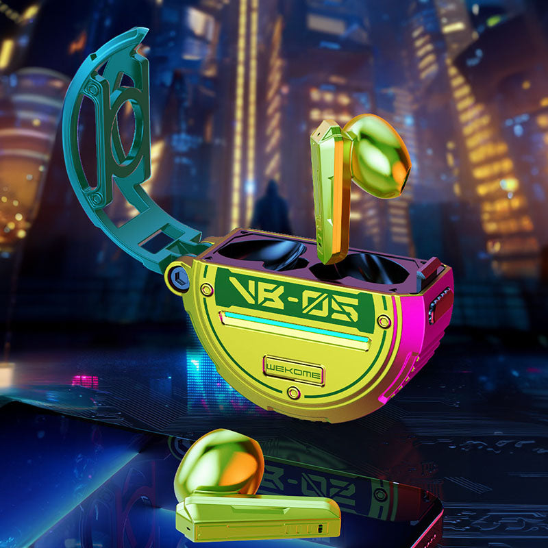 WEKOME VB05 Vanguard Series – Bluetooth V5.3 TWS belaidės ausinės su įkrovimo dėklu (žalia)