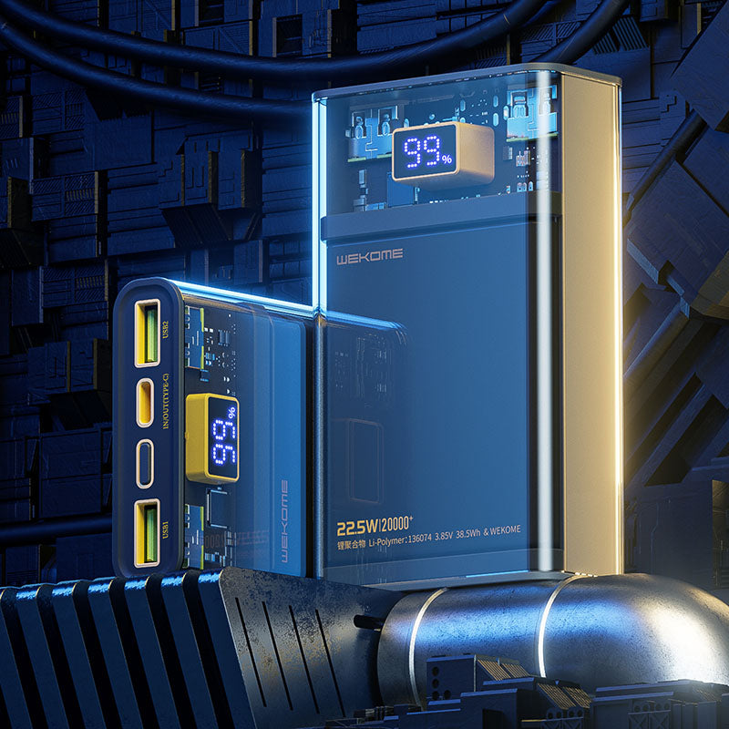 WEKOME WP-321 Vanguard serija – Power bank 20000 mAh Itin greitas įkrovimas PD 20W + QC 22.5W (Juoda / Permatoma)