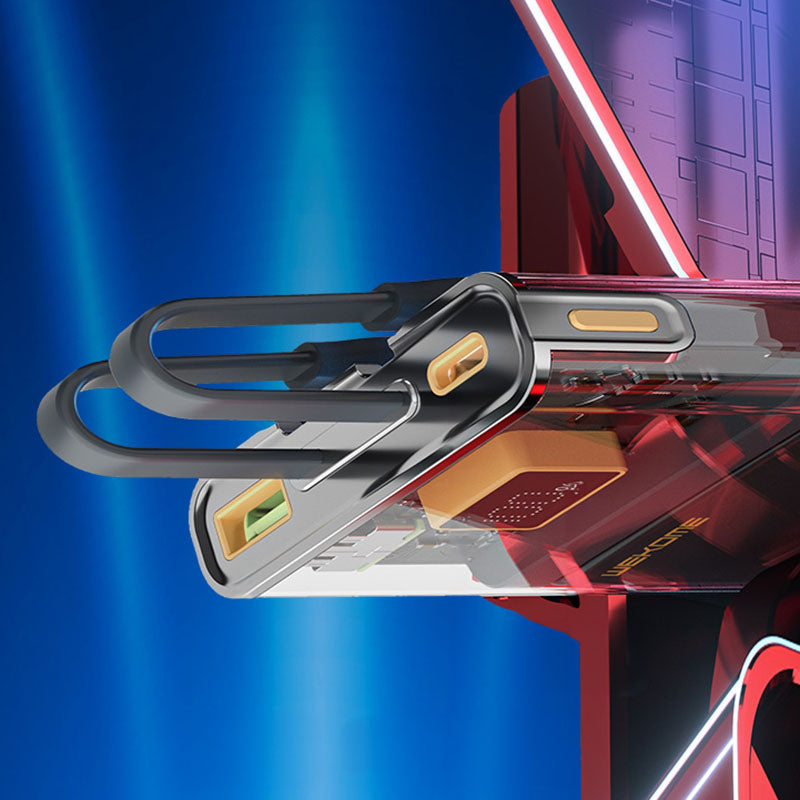 WEKOME WP-325 Vanguard Series – Maitinimo blokas 20000 mAh Super Charging su įmontuotu USB-C ir Lightning PD 20W laidu + QC 22.5W (juoda / permatoma)