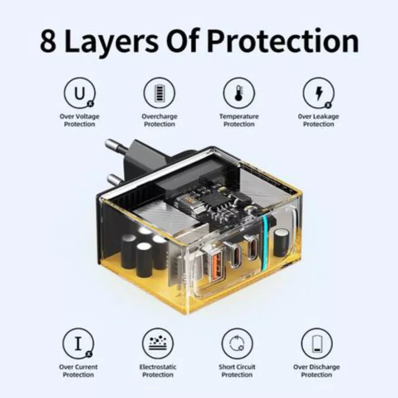 WEKOME WP-U155 Tint Series – 2x USB-C ir USB-A itin greitas GaN 100W įkroviklis (geltonas)