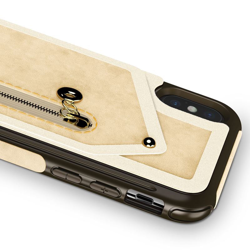 Zizo Nebula piniginės dėklas - piniginės nugarėlė ir užtrauktuko krepšelis su grūdinto stiklo ekrano apsauga iPhone X (rusvos/rudas)